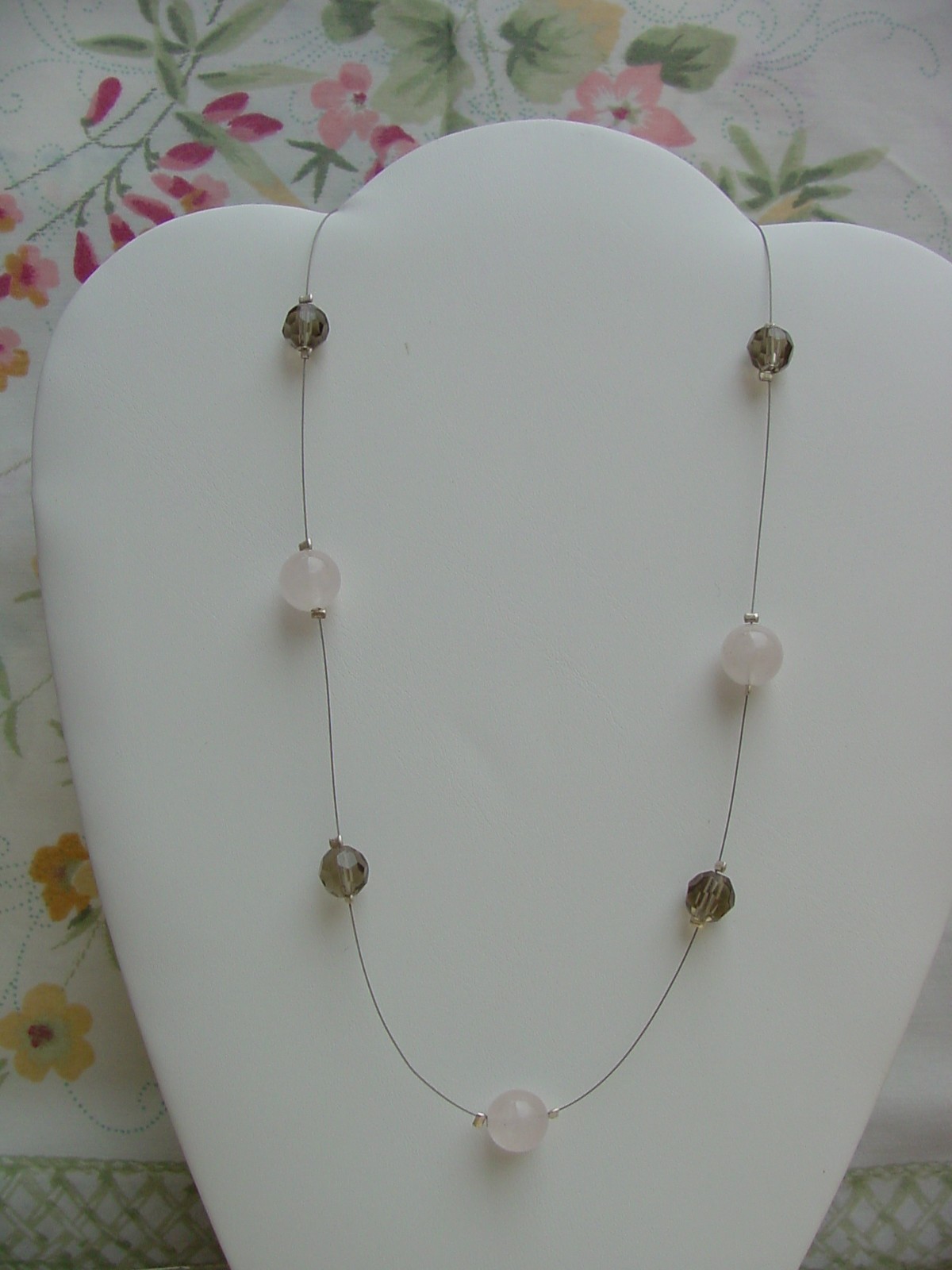 Necklace w/ Pink quarts beads and smokey quartz beads with magnetic clasp