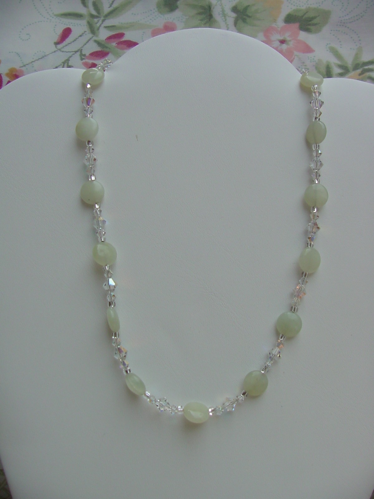 Necklace w/ Swarovski crystals, glass bead spacers, and natural jade beads with magnetic clasp