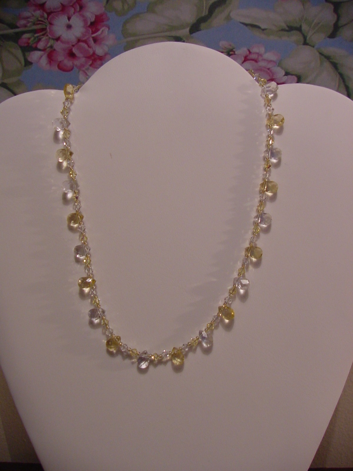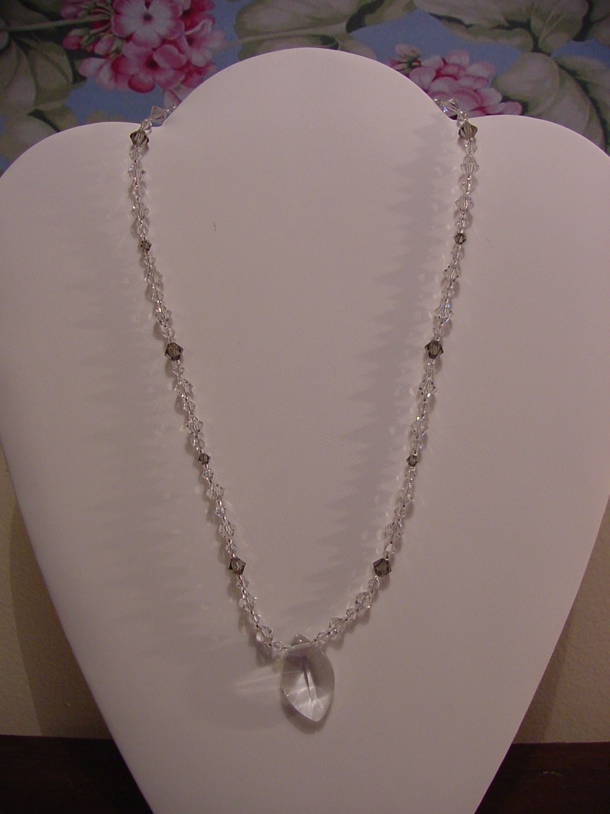 Necklace with Swarovski crystals, glass spacer beads and a marquis shaped faceted clear glass pendant w/ 925 sterling silver toggle clasp